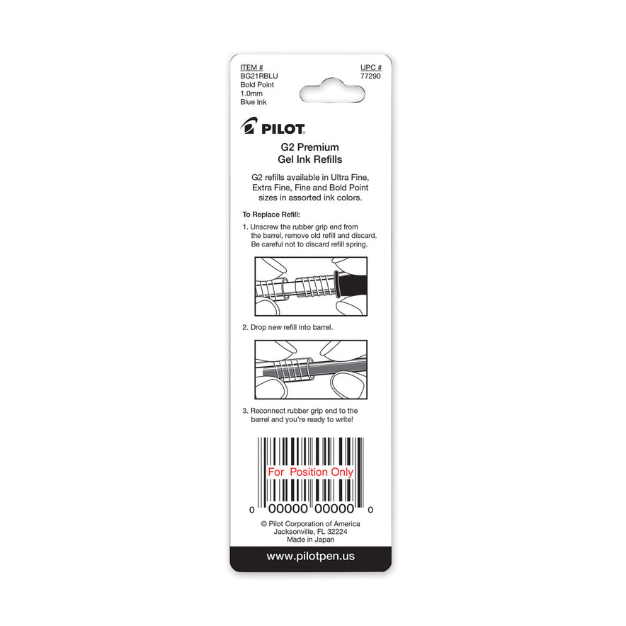 Refill for Pilot G2 Gel Ink Pens, Bold Conical Tip, Blue Ink, 2/Pack (77290PK)