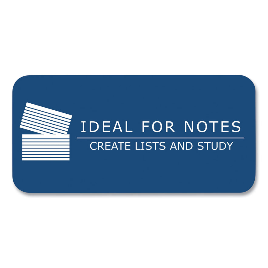 Find a million uses for these handy index cards. Produced with smooth 100# white index recycled paper, the cards are lined on one side with horizontal blue lines and a top red header line. Ruling: Narrow; Card Size (H x W): 3 x 5; Color(s): White; Color Family: White.