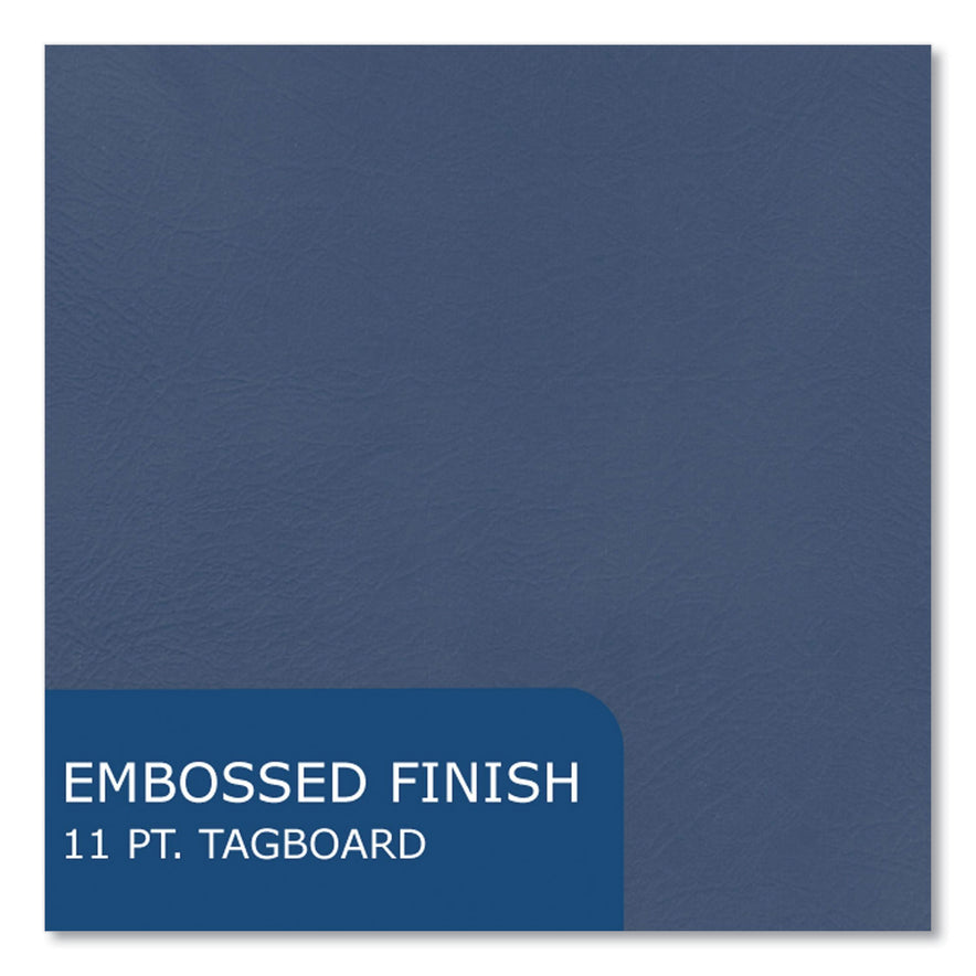 These folders have an embossed leatherette finish. Each folder has three prongs and eyelets for paper storage. Convenient inside pockets provide easy access. The color is printed on durable white tag stock. Colored outsides, inside surface is white. Front Cover Color(s): Assorted; Color Family: Multicolor; Back Cover Color(s): Assorted; Sheet Size: 11 x 8.5.