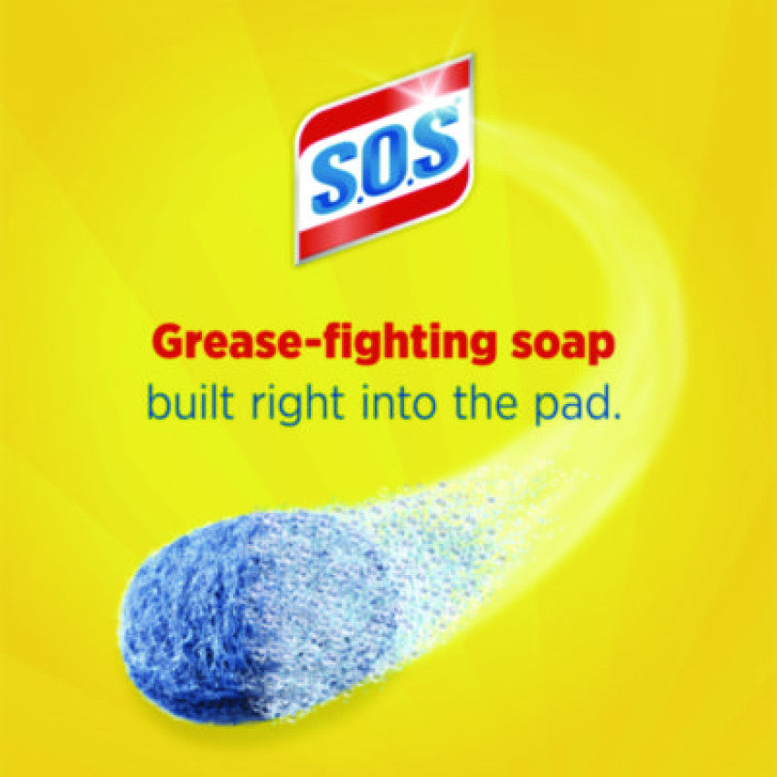 S.O.S Steel Wool Soap Pads are tough so you dont have to be. Made with durable steel wool and saturated with long-lasting soap, these pads cut through even the toughest baked-on, greasy, grimy messes. They are perfect for cleaning ovens, broilers, cookie sheets and pots and pans. The durable and long-lasting design is made for the toughest jobs and can remove baked-on food from pots or pans. These reusable steel wool soap pads are great outside the kitchen, too. From scrubbing stoves and shower doors to cleaning grills and golf clubs, these pads quickly remove stubborn grease, rust and stains inside and outside the home or workplace. The soap contains rust inhibitors, preservatives, biodegradable soaps and detergents, a pH buffer, fragrance and color. Makes aluminum, iron and stainless steel pots and pans sparkle. Cleaning is quick and easy with S.O.S Steel Wool Soap Pads.