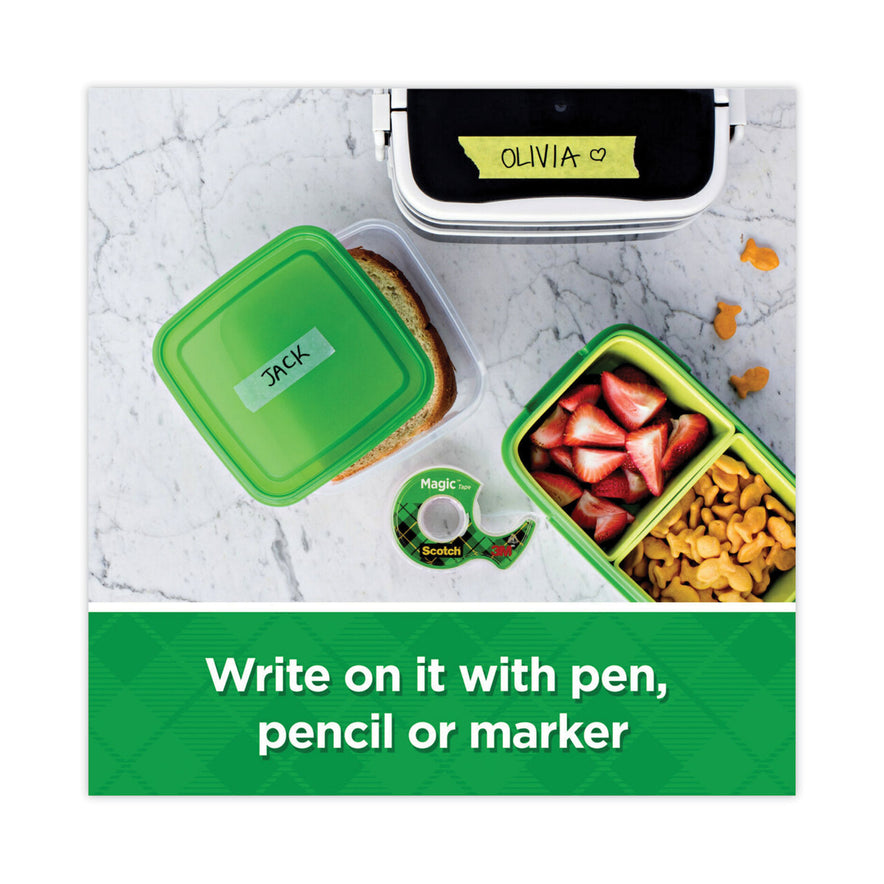 Scotch Magic Tape works as hard as you do to fix all the little imperfections at home, school and the office. The Scotch Brand's famous matte-finish invisible tape uses unique 3M adhesive technology to bond tightly with paper and disappear without a trace. Write on it with pencil, pen or markerevery word is loud and clear. Scotch Magic Tape: Always ready for big ideas and everyday mends. Core Size: 1"; Dispenser Included: No; Backing Material: Plastic; Width: 0.75".