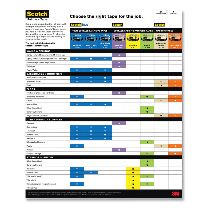 Features Edge Lock Technology that seals out paint to deliver sharp paint lines. Whether you're protecting your wood trim, painted walls, tile floor or glass windows, this versatile multi-surface tape can stay on surfaces for up to 21 days. Removes easily without leaving any sticky residue behind. Offers powerful protection to help keep your wainscoating paint free and shield your built in shelves. Core Size: 3"; Dispenser Included: No; Adhesive Material: Acrylic; Backing Material: Paper.