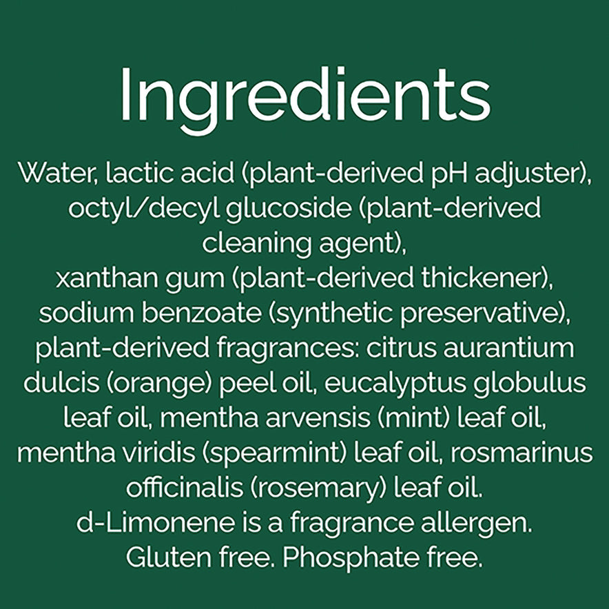 This plant-based formula attacks stubborn stains without chlorine bleach and freshens every toilet bowl made from 100% essential oils and botanical ingredients. This toilet bowl cleaner gets the job done with a septic-safe, biodegradable (biodegrades in 28 days) formula with no dyes and no chlorine bleach. Made from 97% biobased ingredients. Ideal for commercial use including restaurants, offices, day care facilities, schools and hospitality. Application: Bowl Cleaner; Applicable Material: Ceramic Tile; Chemical Compound: Water; Lactic Acid; Octyl/Decyl Glucoside; Xanthan Gum; Sodium Benzoate; Fragrance; Dirt Types: Rust.