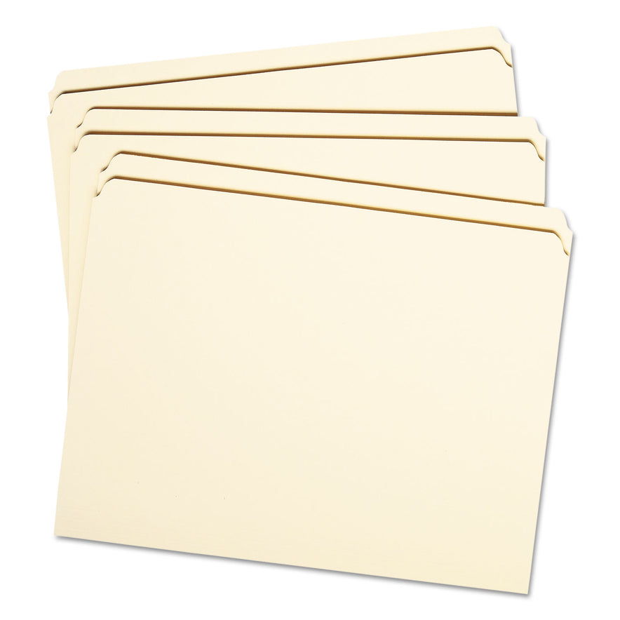 Reinforced tabs provide extra strength where you need it most. More durable than single-ply standard file folders. Built stronger to last longer. Scored for 0.75" expansion. Made of manila stock for everyday use. File Folder Size Type: Letter; File Folder Color: Manila; Color Family: Manila; File Folder Material: 11-pt Manila.