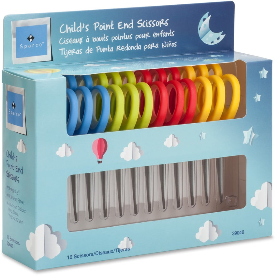5" scissors designed for use by children between 3 to 8 years old. With a pointed end, these scissors provide a precise way for children to work on arts and crafts projects. Scissors feature a two-tone comfortable soft grip for added safety while cutting.