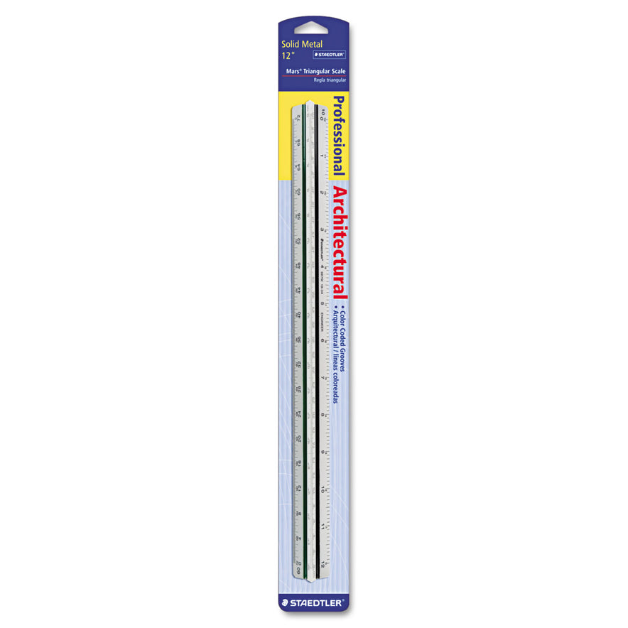 Staedtler Triangular Scale for Architects, Color-Coded Grooves, 12" Long, Plastic, White, Blister Pack (9871831BK)