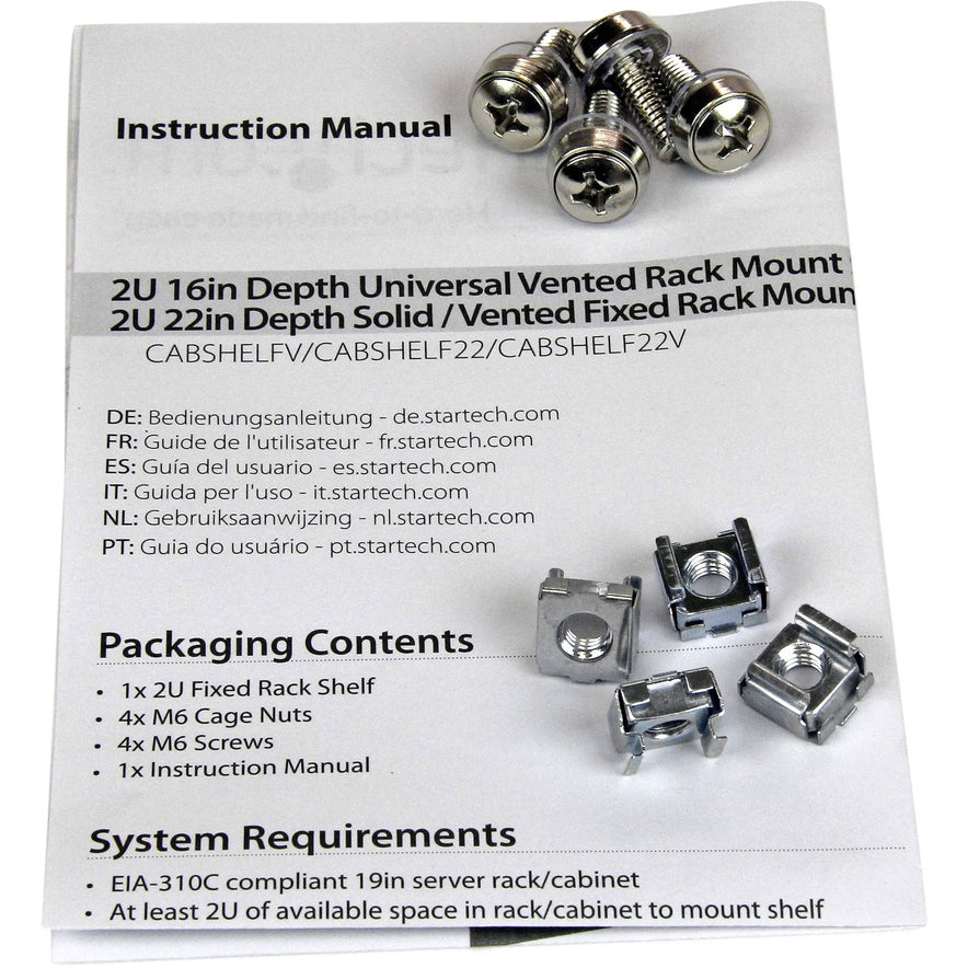 StarTech 2u 22in Vented Fixed Rack Mount Shelf (CABSHELF22V)