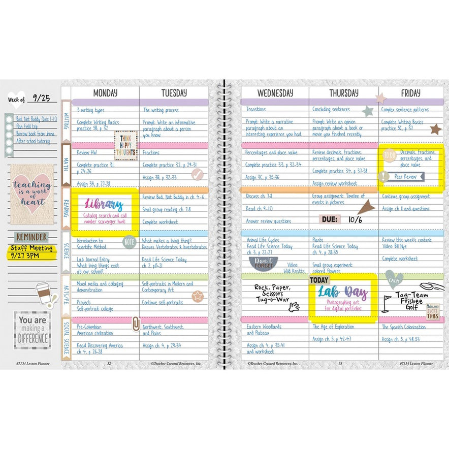 Everyone is Welcome Lesson Planner enhances your organization in a stylish, beautiful design. Plan up to 40 weeks of daily lessons in one convenient location. Book includes substitute teacher information, student roster sheets and memorable quotations to use and discuss throughout the year. Large, monthly calendar spreads are also included for yearlong lesson planning, appointment scheduling, conferences, events and more. Lesson planner comes with a variety of 340 planning stickers to prioritize events, add weekly reminders, highlight something special or simply provide a bit of inspiration.