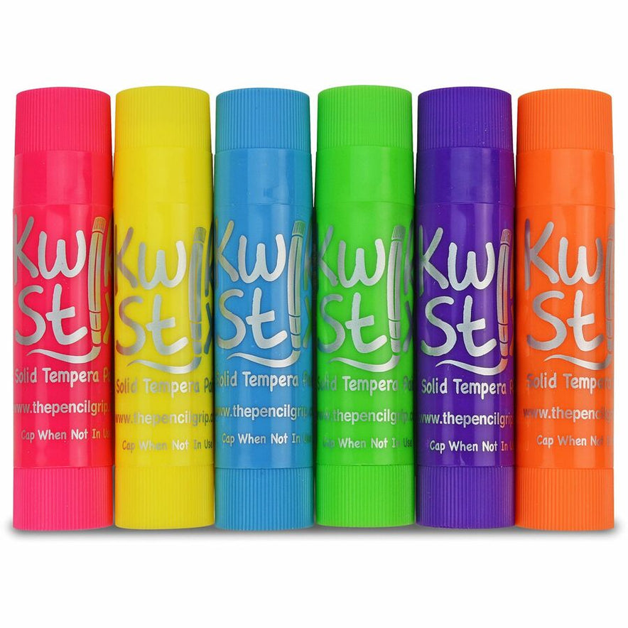 Enjoy mess-free painting with Neon Kwik Stix. These tempera paint sticks take the mess out of painting while keeping all the fun. Simply uncap, twist and paint. Kwik Stix have a fast-drying formula that allows them to dry in 90 seconds while still leaving a paint-like finish. You won't need cups, smocks, water or brushes. Kwik Stix come in assorted vibrant colors with coverage that won't crack or fade. They work great on poster paper, cardboard, wood and canvas. Neon Kwik Stix are nut-free, egg-free and gluten-free.