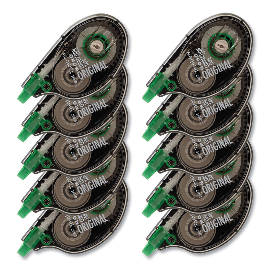 Tombow MONO Correction Tape, Gray/Clear Applicator, 0.17" x 394", White Tape, 10/Pack (68720)