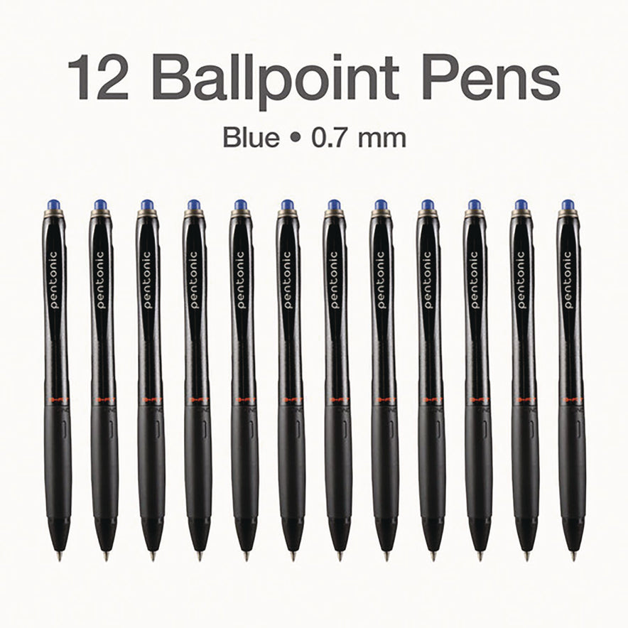 TOPS PENTONIC Retractable Ballpoint Pen, Fine 0.7 mm, Blue Ink, Blue Barrel, 12/Pack (12123)
