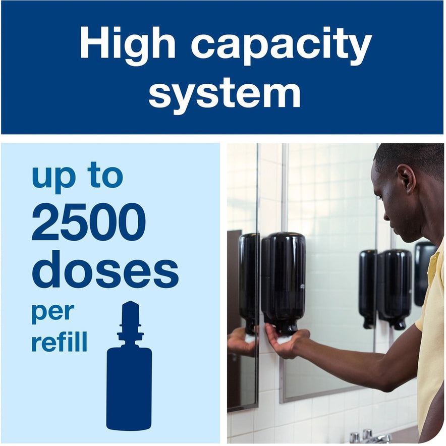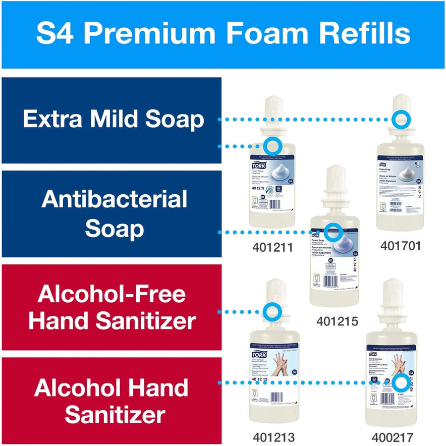 Can be filled with Tork S4 system foam soaps and hand sanitizer products.