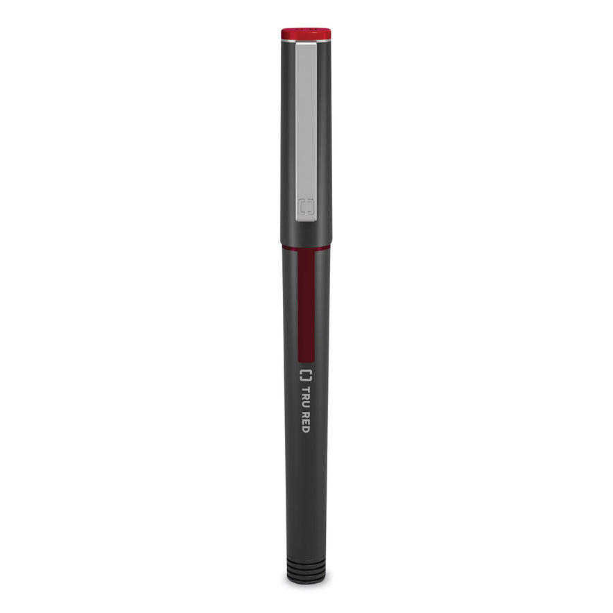 TRU RED Roller Ball Pen, Stick, Fine 0.5 mm, Red Ink, Black/Red/Clear Barrel, Dozen (24419534)
