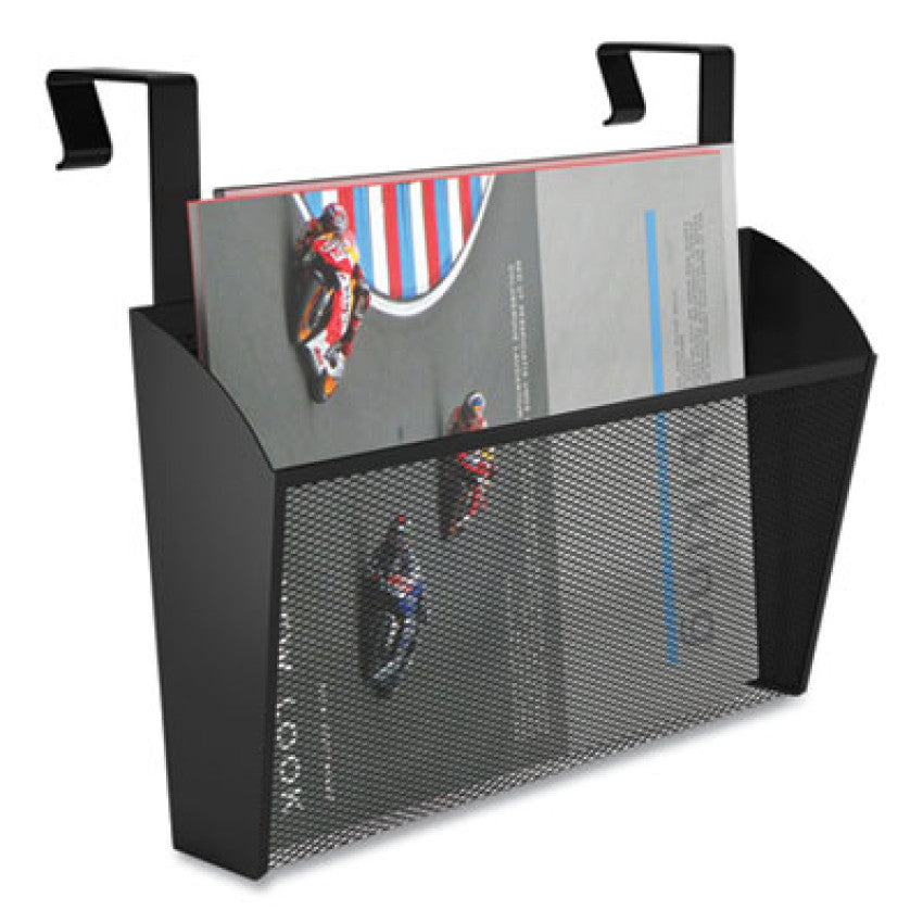 Minimize clutter and store important documents for quick retrieval. Tightly woven metal-mesh body delivers reliable performance. Sleek, flat-square frame with rounded edges brings a sleek design flair to your office space. Hanging File Systems Type: Wall; For File Size: Letter; Width: 14.37"; Depth: 3.34".