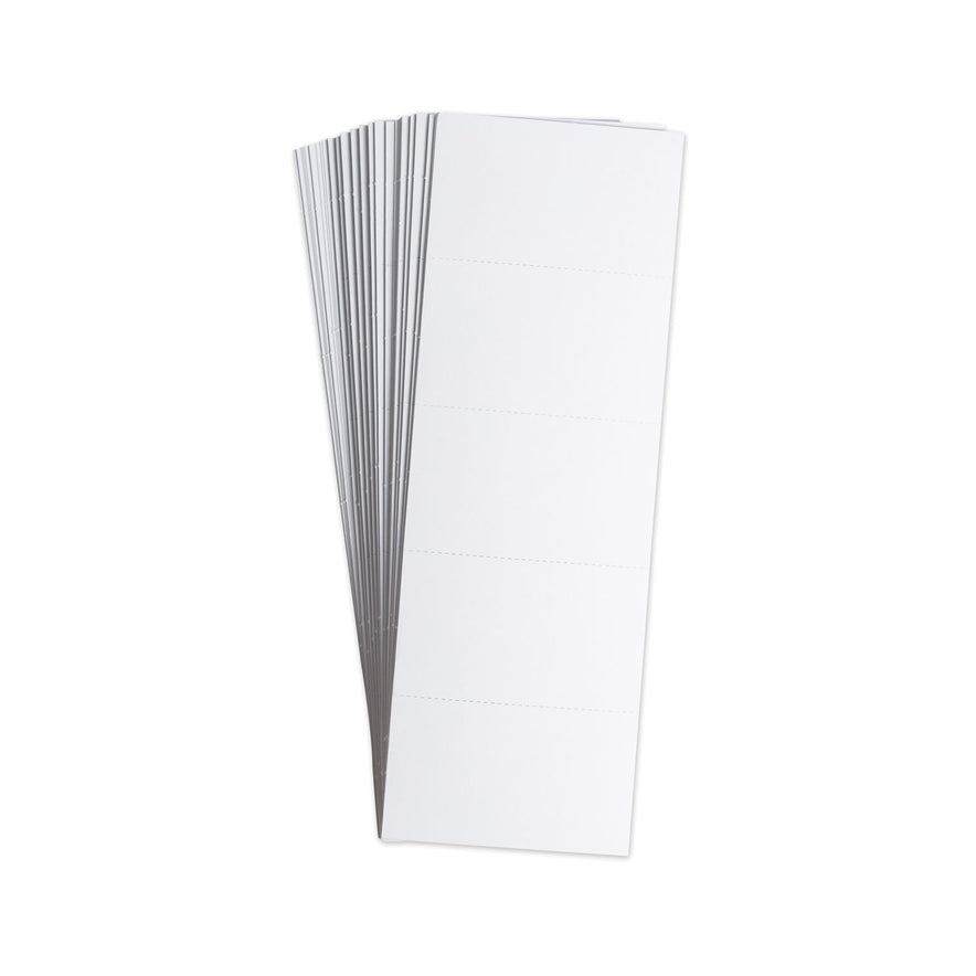 Quickly update and change data with U Brands Data Card Paper Inserts. These data card refills are the perfect blank canvas for you to organize your workspace for maximum efficiency. To use, simply tear away the label from the sheet, write your message and insert into you magnetic label card holder. Height: 1.75"; Width: 3"; Sheet Size (W x H): 3 x 8.75; Color(s): White.