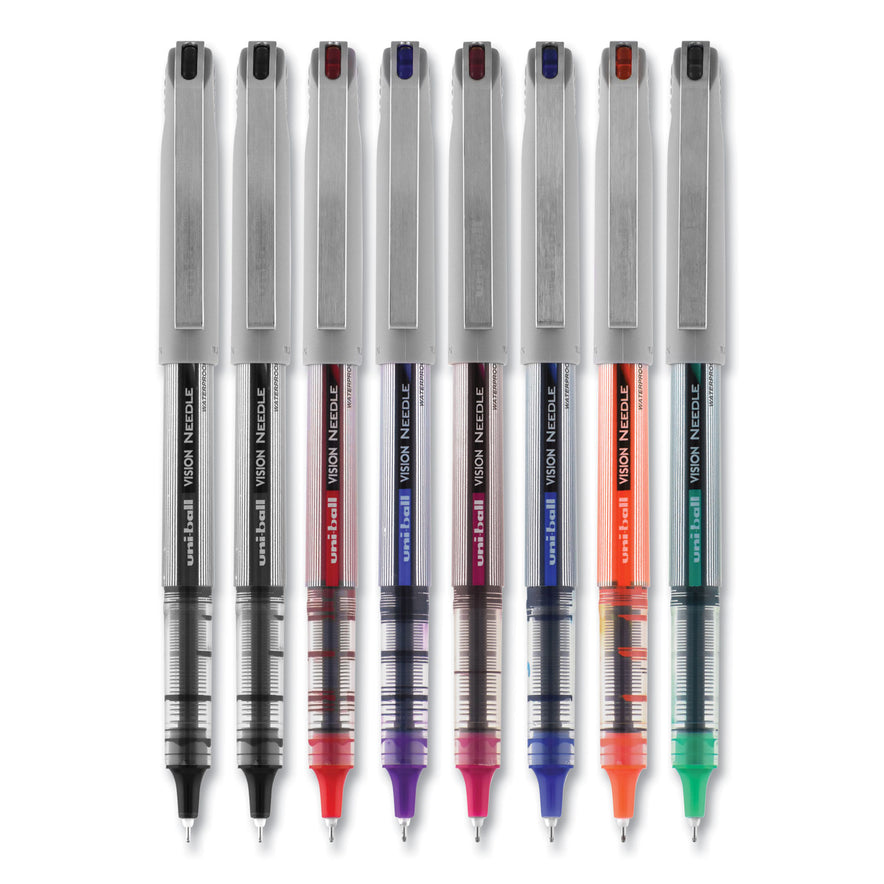 uni-ball VISION Needle Roller Ball Pen, Stick, Fine 0.7 mm, Assorted Ink and Barrel Colors, 8/Pack (1734916)