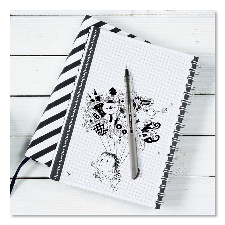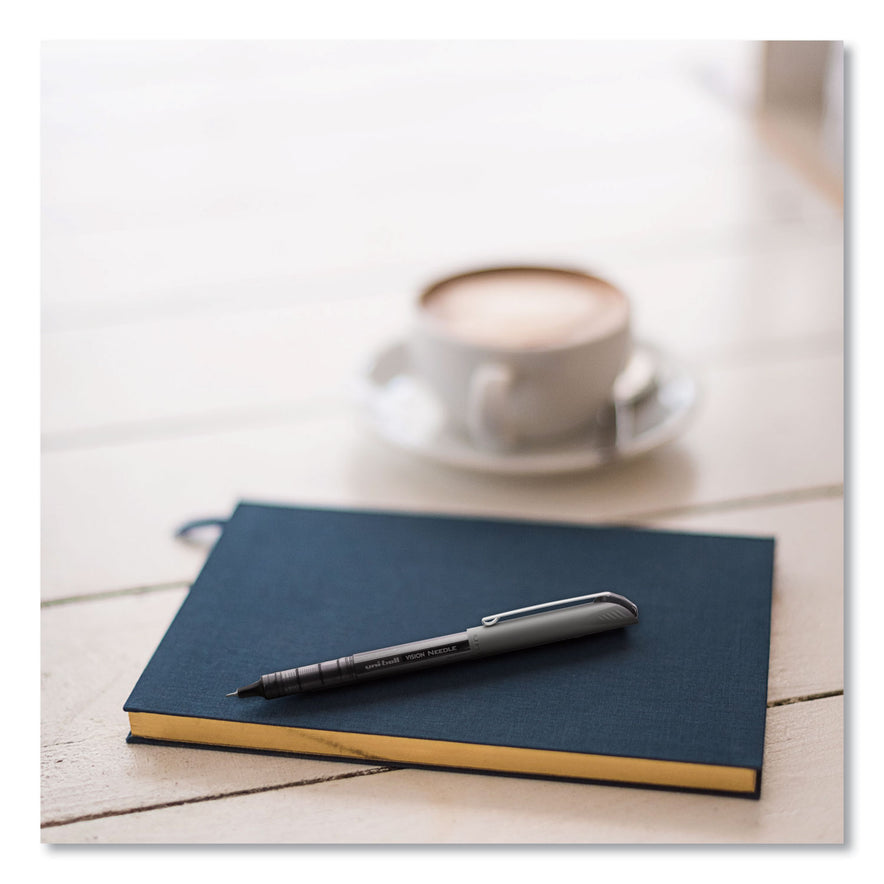 Stock your office, home or classroom with Vision Needle Stick Rollerball Pens from uni-ball featuring a strong, long lasting 0.7 mm fine point. These needle point pens are designed with a bend resistant tip for better accuracy. Even-flowing, pigment-based roller ink delivers a smooth writing experience for reliably smooth, vivid lines and a rich color for improved clarity and readability. Use these fine point rollerball pens to create perfect letters, numbers and graphics. Innovative uni Super Ink technology effectively entraps the liquid ink into the paper, producing fraud, fade and water-resistant documents that resist check washing or bleaching. The 0.7mm fine needle point allows you to create ultra-precise, straight edge lines with ease. The exclusive Uni-Flow Ink System ensures a consistent, delightfully fluid writing experience, and a translucent window ensures that you don't run out of ink unexpectedly. Enjoy beautiful clean lines and give all of your ideas a burst of brilliant color with this classic style fine point rollerball pen. Pen Sub-Brand & Product Family: VISION Needle; Pen Type: Roller Ball Pen; Pen Style: Stick; Pen Tip Type: Needle.