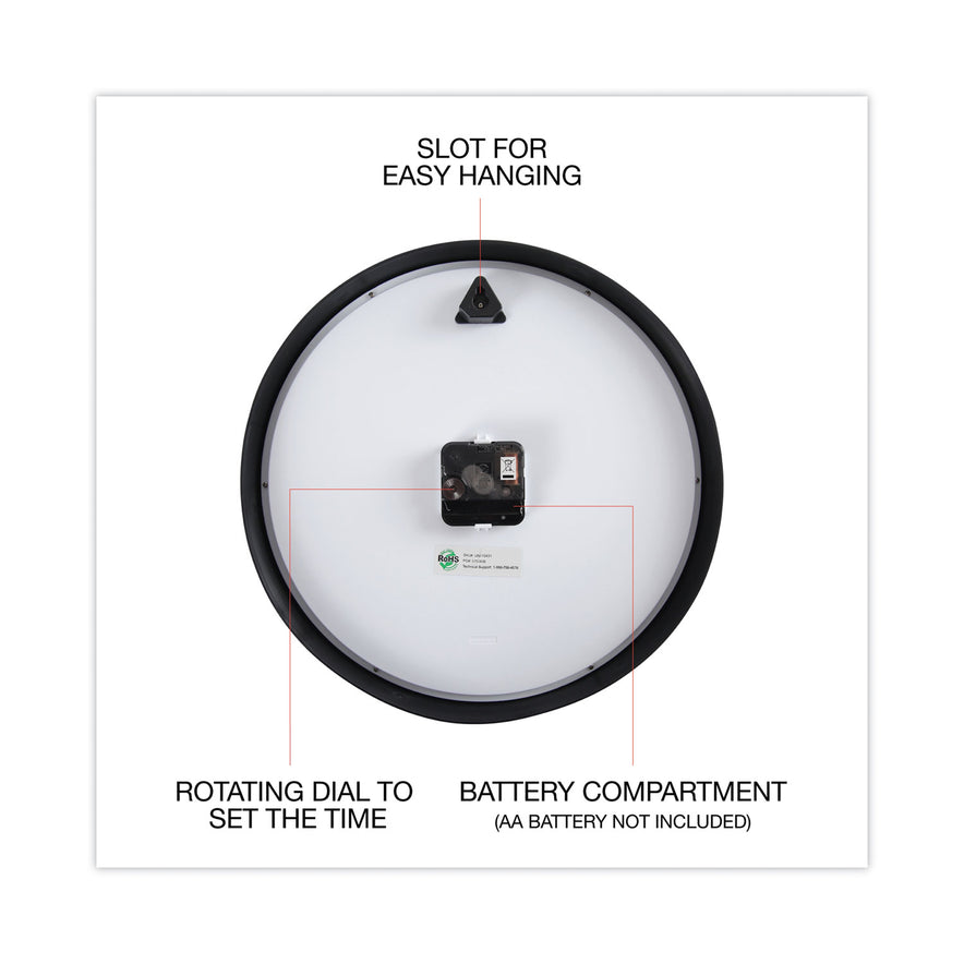 Universal Classic Round Wall Clock, 12.63" Overall Diameter, Black Case, 1 AA (sold separately) (10431)