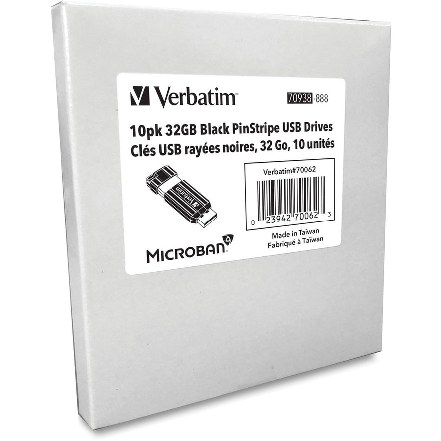 Microban 32GB PinStripe USB Flash Drive - Business 10pk - Black (70062)