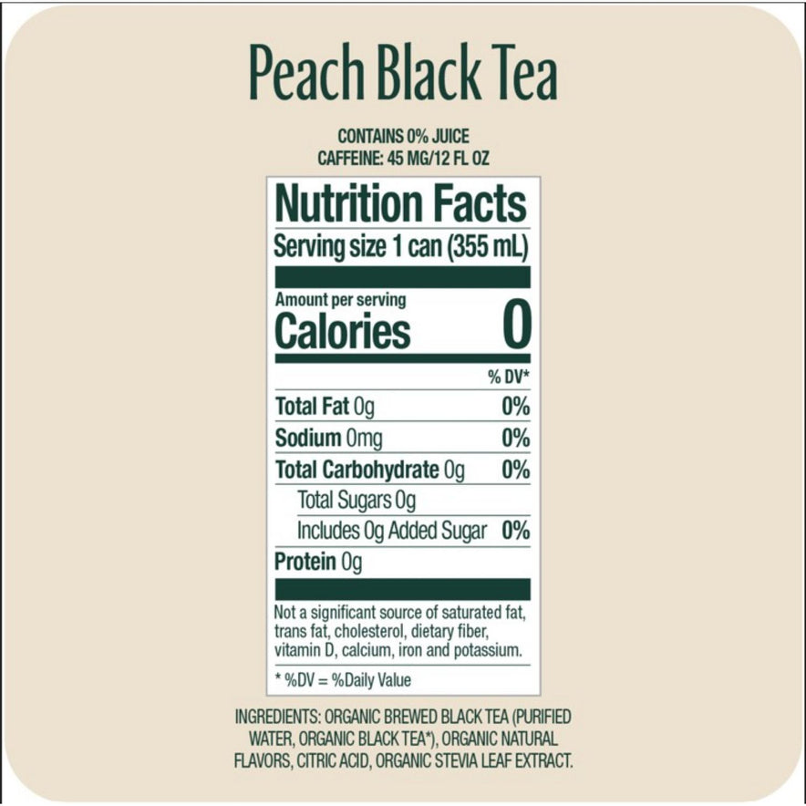 With Zevia, we've combined the flavor of Fair Trade Certified black tea with delicious bold flavors. Of course, we made it naturally sweetened, with zero sugar and zero calories. So it's a flavor marriage made in heaven. Or at least, in our HQ. Beverage Type: Iced Tea; Flavor: Peach Black Tea; Packing Type: Can; Capacity (Weight): 12 oz.